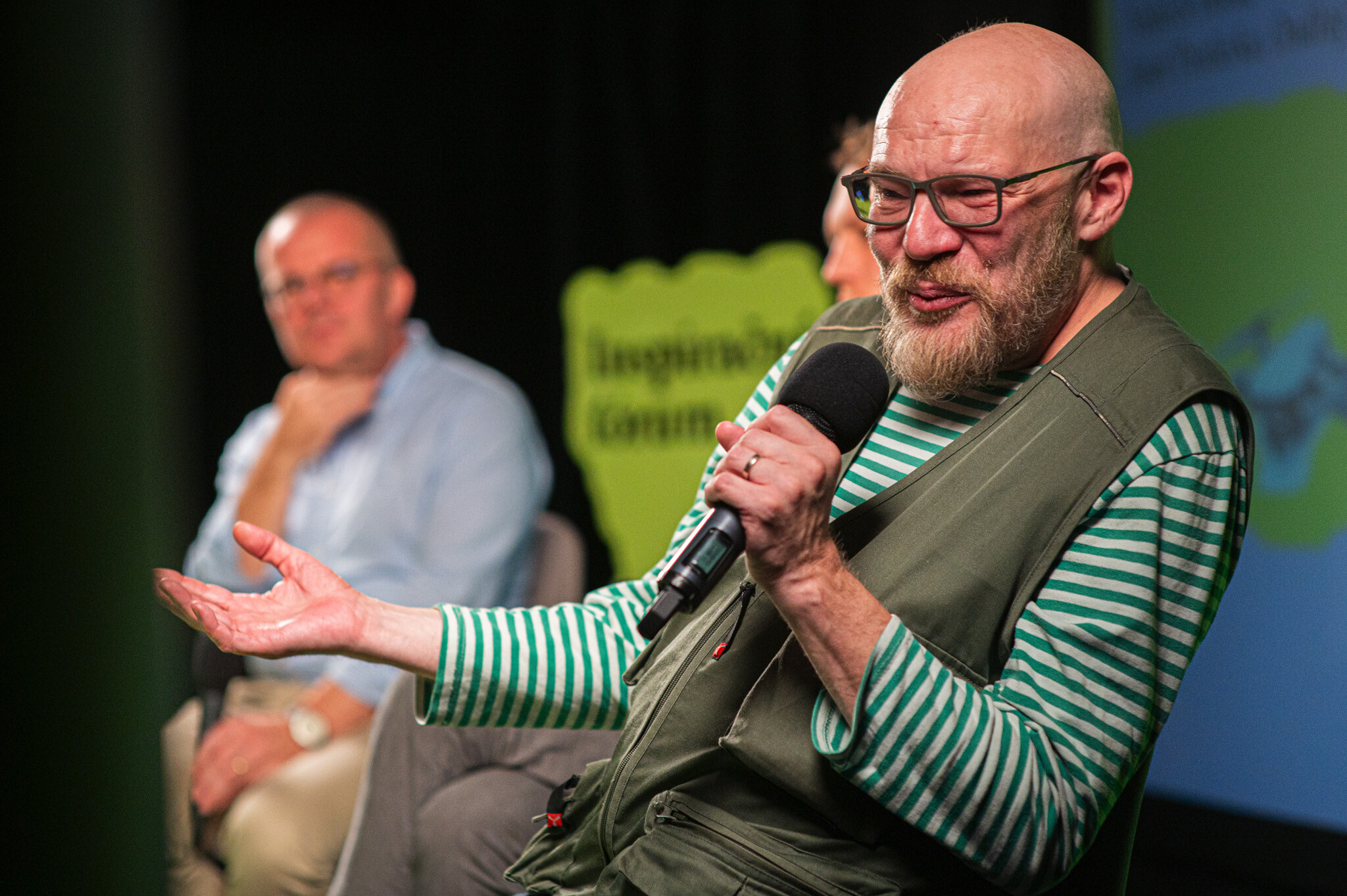 První listopadový pátek jsme kladli otázku, zda s novými objevy v oblasti imunity najdeme i novou imaginaci pro naše místo v měnícím se světě. Mikrobioložka Monika Cahová v přednášce Tajemství mikrobiomu představila naše současné znalosti o tomto marketingově vděčném, ale stále ještě záhadami opředeném pojmu. Debata Nedoléčeno za účasti zmocněnkyně pro lidská práva Kláry Šimáčkové Laurenčíkové, umělce Adama Hrubého, fotografky Hany Pololáníkové, lékařky tropické medicíny Silvie Dobrodenkové a aktivistky Rebeky Veselé, moderovaná publicistkou Magdalenou Duškovou, otevřela závažné a stále ještě tabuizované téma long covidu. Filozof*ka Timothy Morton v rozhovoru s filozofem Lukášem Likavčanem s názvem Planetární imunita představil křesťanské hodnoty milosrdenství a odpuštění jako potřebné impulzy, které ekologické hnutí potřebuje v boji proti klimatické krizi. A filozof Martin Zach v rozhovoru s publicistkou Pavlou Hubálkovou představil Nové pojetí imunity, která nás nejen brání, ale také opravuje poškozené tkáně.