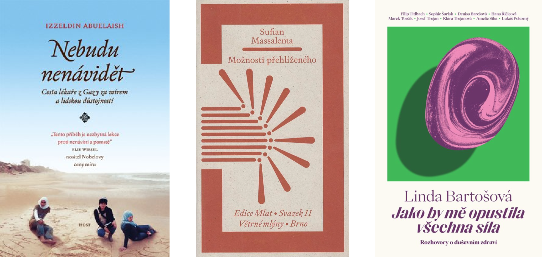 Proč si ji přečíst: Vzpomínky palestinského lékaře a mírového aktivisty Izzeldina Abuleashe, který při bombovém útoku v Pásmu Gazy přišel o své tři dcery, otevírají cestu k zamyšlení o podstatě lásky, síle odpuštění a odmítnutí pomsty. Ukazují, jak i po největší osobní tragédii lze hledat cestu k míru, porozumění a spolupráci mezi lidmi na obou stranách konfliktu. - Možnosti přehlíženého, Sufian Massalema (2024, Větrné mlýny)