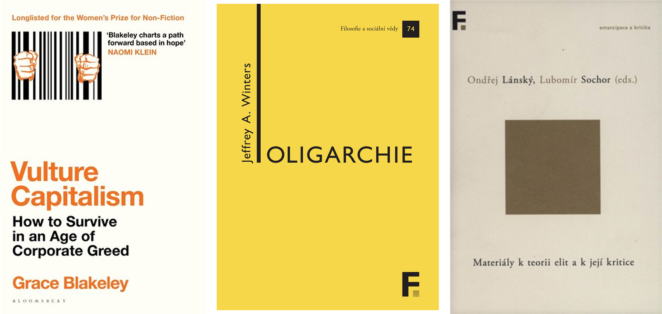 Proč si ji přečíst: Ukazuje, jak bohatství formuje a zároveň ohrožuje oligarchy napříč dějinami a zároveň představuje jejich hlavní motivaci: obranu majetku. Přináší přehled různých typů oligarchie a vysvětluje, proč demokracie často oligarchii nevylučuje, ale naopak s ní splývá. - Materiály k teorii elit a k její kritice, Ondřej Lánský, Lubomír Sochor (2018, Filosofia)